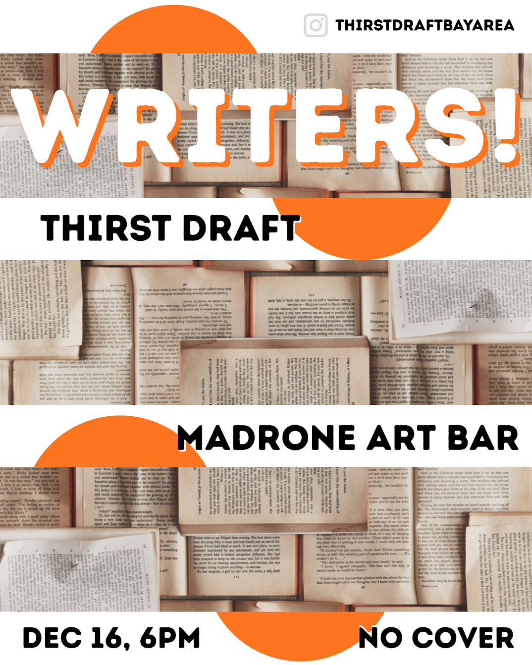 No cover, no editing, no AI. Pens and paper will be available, but bring your own if you can. Tip your bartenders and support your fellow writers.
